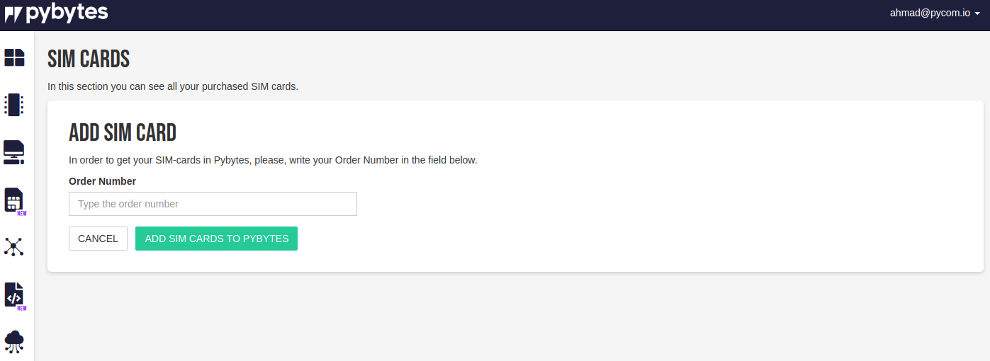 • Click ADD SIM to Pybytes (this will validate all sim cards you have purchased in this order)