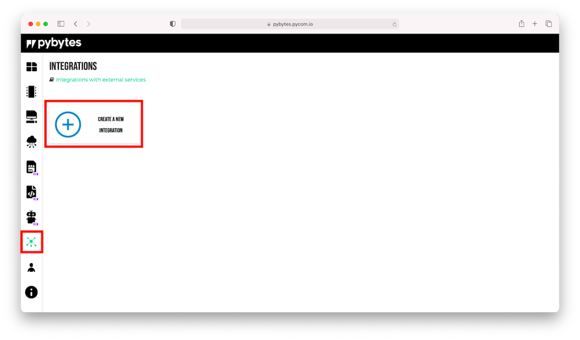 Pybytes offers a way to interact with external IoT platform or custom services, including the following: