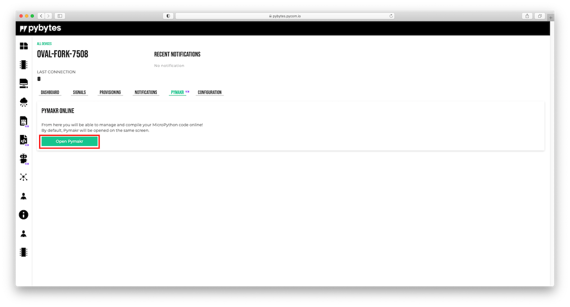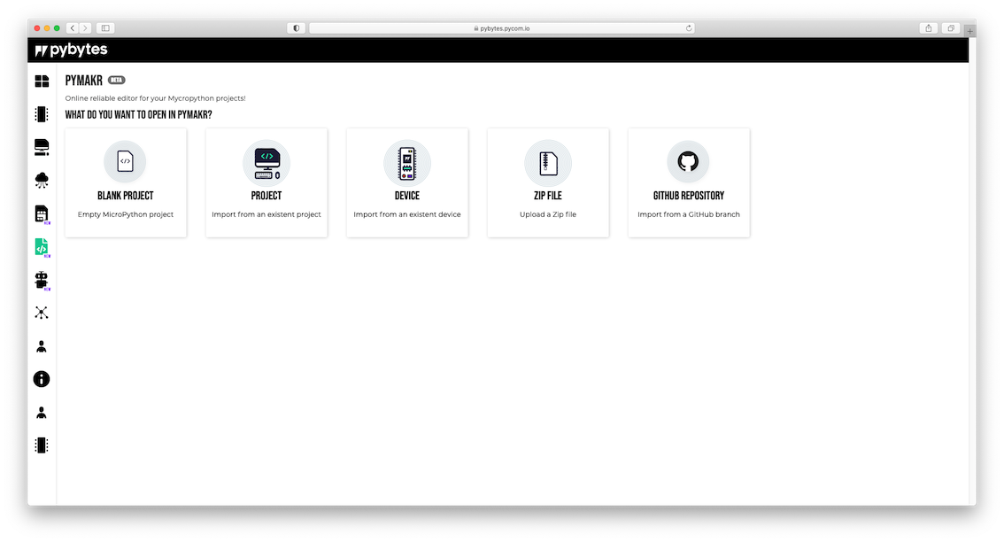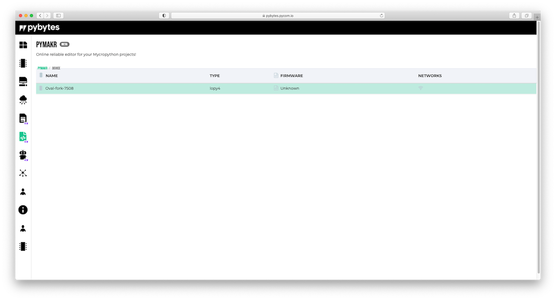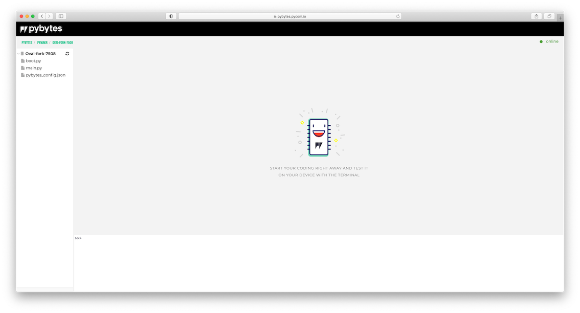 toc Pymakr Online more_vert What's in this document more_vert Pybytes > Pymakr Online