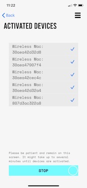 4. After pressing the START button, a list of devices will appear on the screen. It may take up to several minutes to provision all of your devices. The first device usually appears on the screen within one minute.