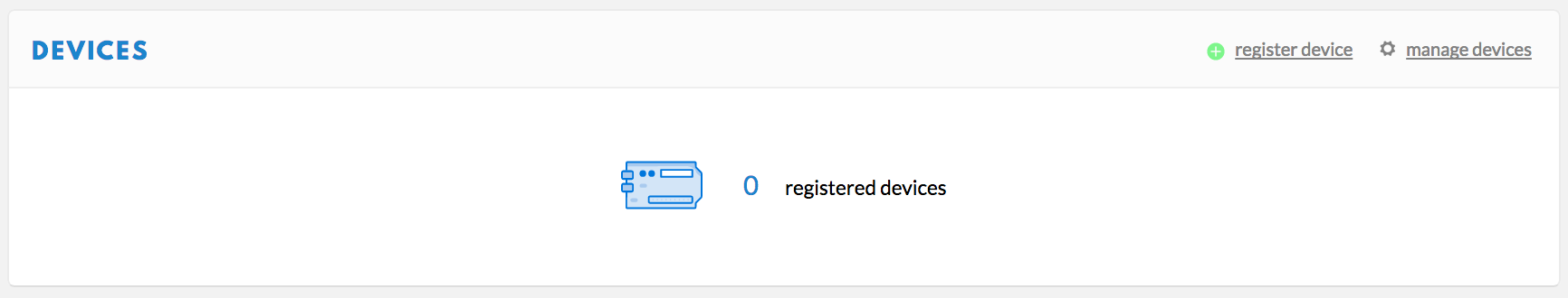 To connect nodes to the nano-gateway, devices need to be added to the application. To do this, navigate to the Devices tab on the Application home page and click the Register Device button.