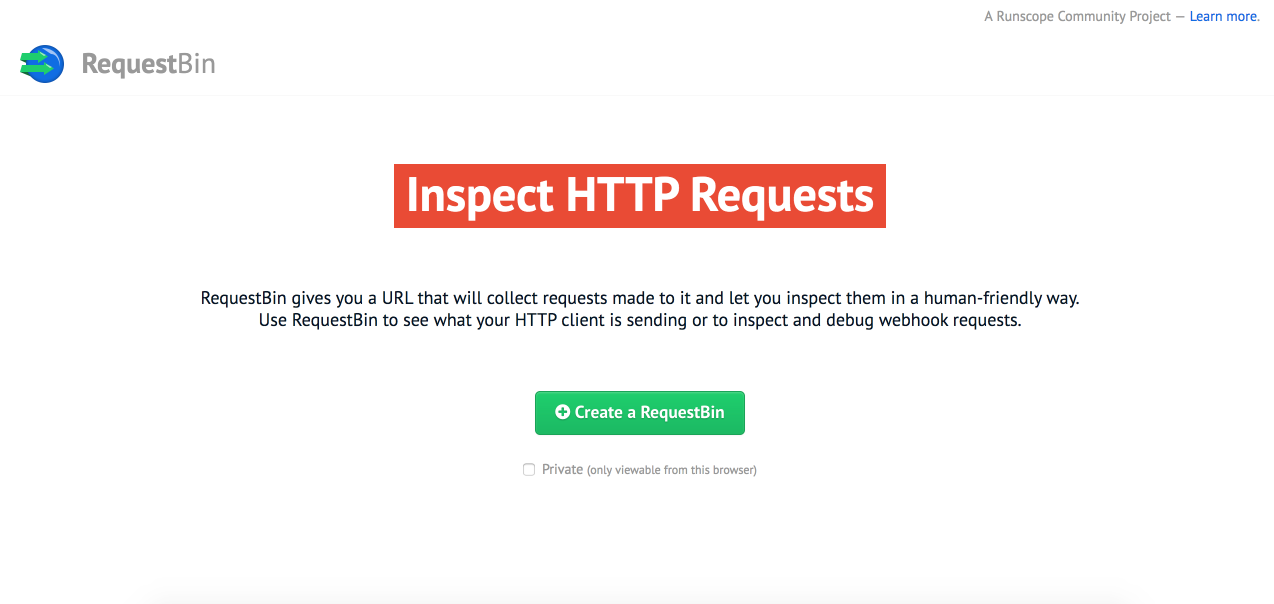 For testing, a website called RequestBin, may be used to receive the data that TTN forwards (via POST Request). To set this up, navigate to RequestBin and click the Create a RequestBin.