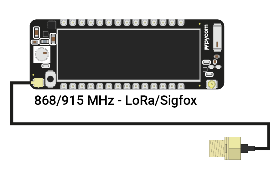 When using the SigFox network, Always connect the appropriate LoRa antenna to your device. See the figures below for the correct antenna placement